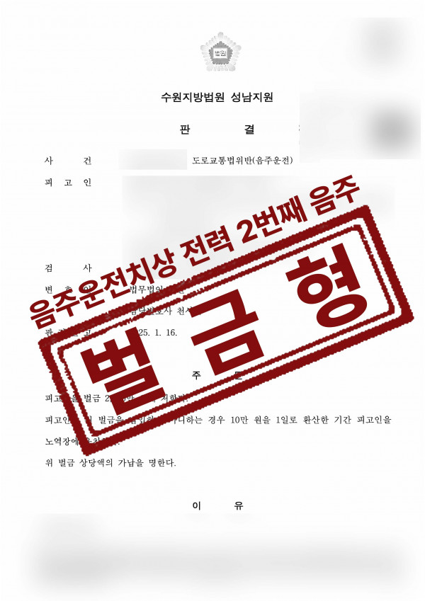 과거 음주운전으로 사람을 상해했던 특경법위반(위험운전치상), 음주운전의 전력으로 벌금형 1,000만원을 선고받았던 의뢰인은 다시금 음주운전으로 연루되었습니다.
