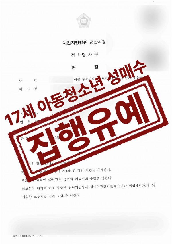 성범죄(집행유예) 17세 미성년자조건만남 성매수 집행유예 성공사례