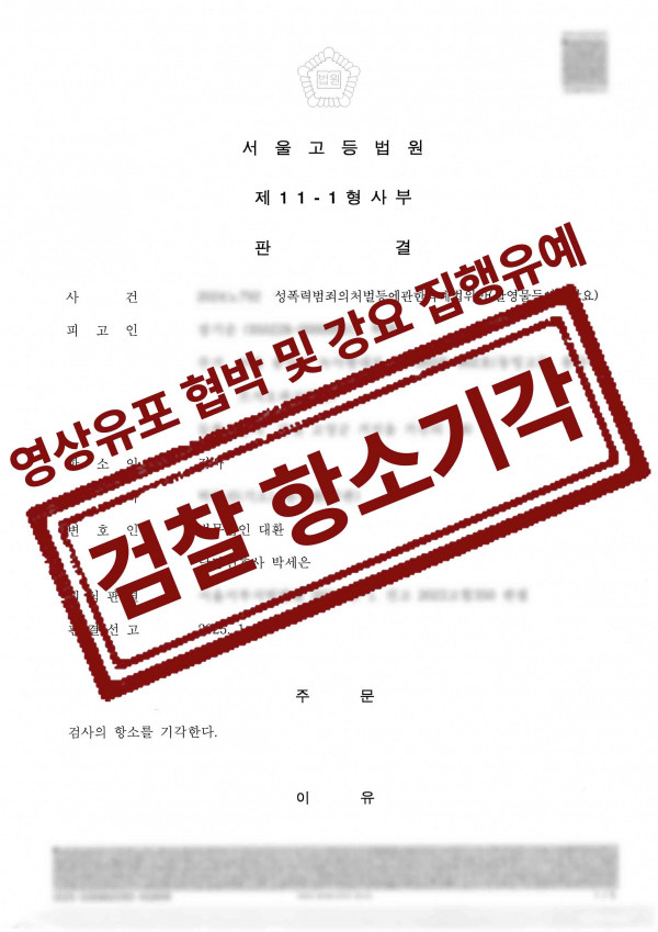 영상 유포 협박 및 강요 사건 집행유예 선고 후 검찰 항소 기각 성공사례