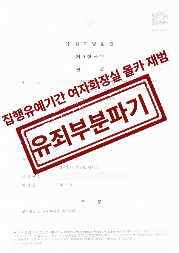 여자화장실 몰카 사건 – 1심 징역 선고, 2심 항소 인용으로 감형 성공사례