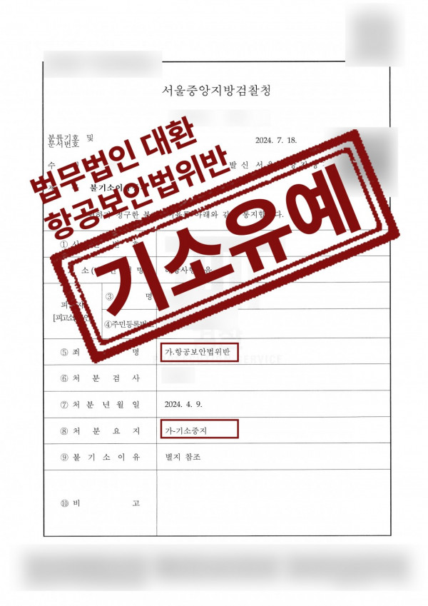 발생한 사안은 다릅니다. 처벌수위 또한 높고 항공보안법위반으로 최대 징역이 10년입니다.
