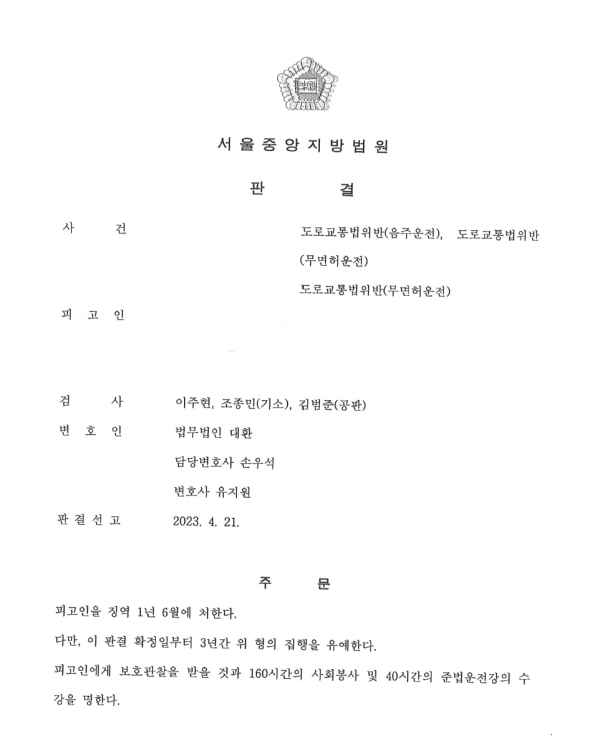 이에 따라 법무법인 대환은 집행유예 선고를 이끌어 낼 수 있었습니다.