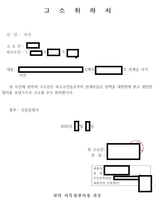 전세계약기간 만료가 임박한 상황에서, 발빠르게 피의자들의 사기혐의를 소명하고 피의자들을 설득하여, 합의금으로 전세금 전액을 보전 받은 사안입니다.