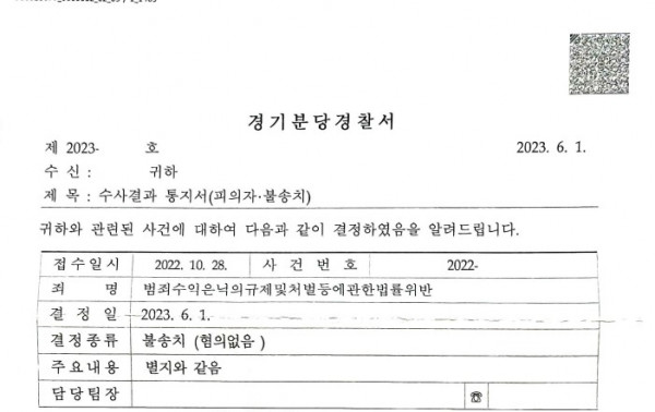 형사(무혐의) 범죄수익은닉 혐의 불송치(혐의없음)결정 성공사례