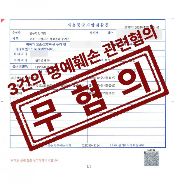 형사(무혐의) 부정적 댓글로 인한 명예훼손,개인정보보호법위반,업무방해 3건의 혐의 전부 무혐의 성공사례