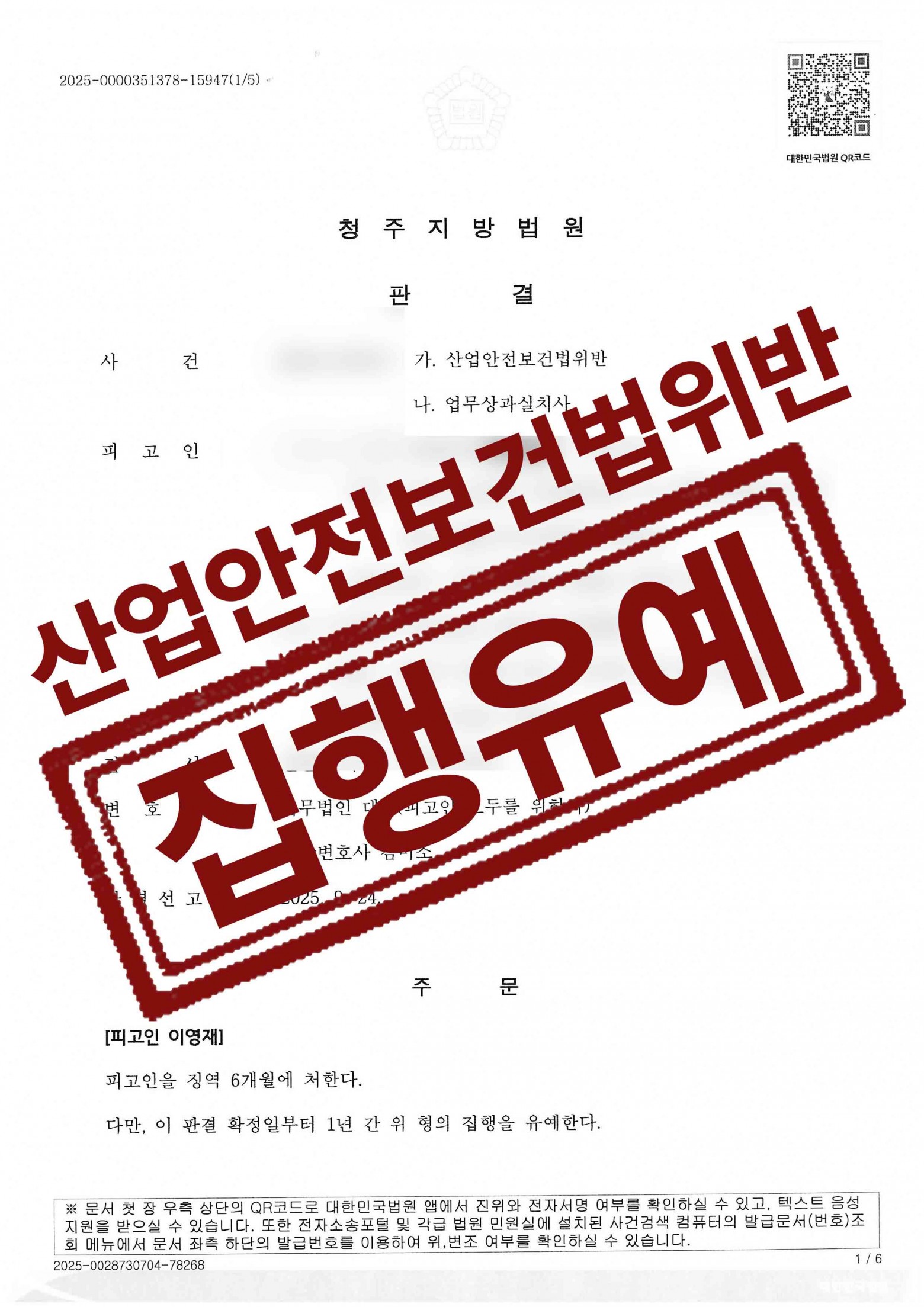 기업법무(집행유예) 건설사 사망사고, 산업안전보건법위반 혐의 집행유예 성공사례