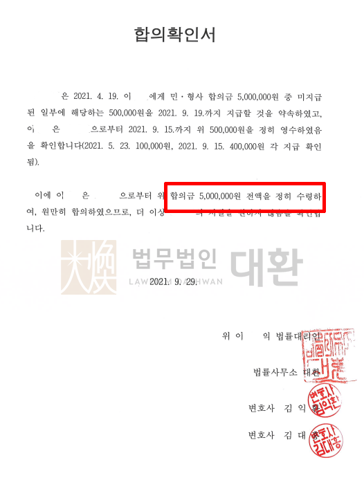 담당변호사는 해당 게시글의 블라인드 요청과 함께 더 이상의 허위사실 유포를 허가하지 않겠다고 알리며 정보통신망법 위반으로 고소장을 접수하였으나, 접수 직후 피의자가 직접 방문하여 합의와 함께 선처를 요구하여 원만히 합의하였습니다.
