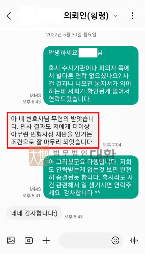 이를 통해 검찰은 의뢰인에게 혐의가 없음을 인정하고 무혐의 처분을 내렸습니다