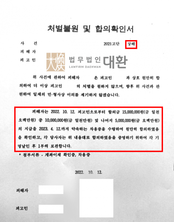 피해자 의뢰인, 1,500만원 수령