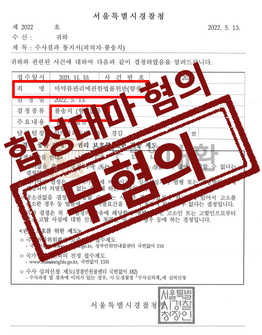 마약(무죄) 합성대마 연루 의심에도 불구하고 불송치(혐의없음) 처분을 이끌어낸 성공사례